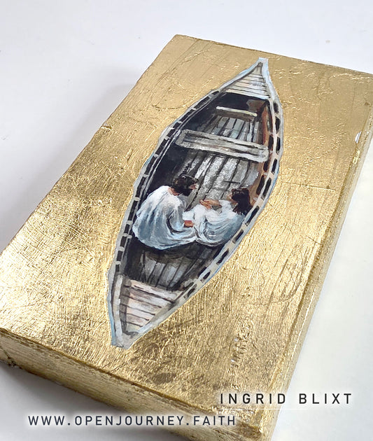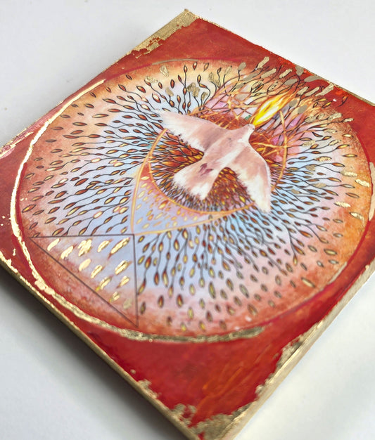 Blessed Mother and Jesus - mix media 5x5 Icon