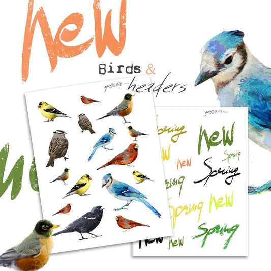Birds and headers illustrations - digital download for bible journaling, card making and craft