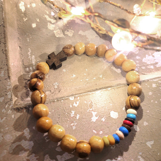 A functional and beautiful bracelet, perfect for prayer reminders. It has 10 main large beads, great for praying the Rosary, chaplets, the Jesus prayer and more. Set on a stretchy cord, it is very easy to put on or take off.
