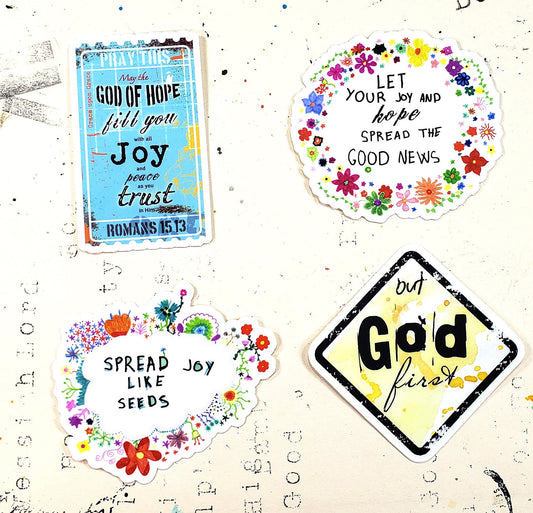 Beautiful, faith themed vinyl die cut stickers. The thick, durable vinyl protects the stickers from scratches, water & sunlight.
