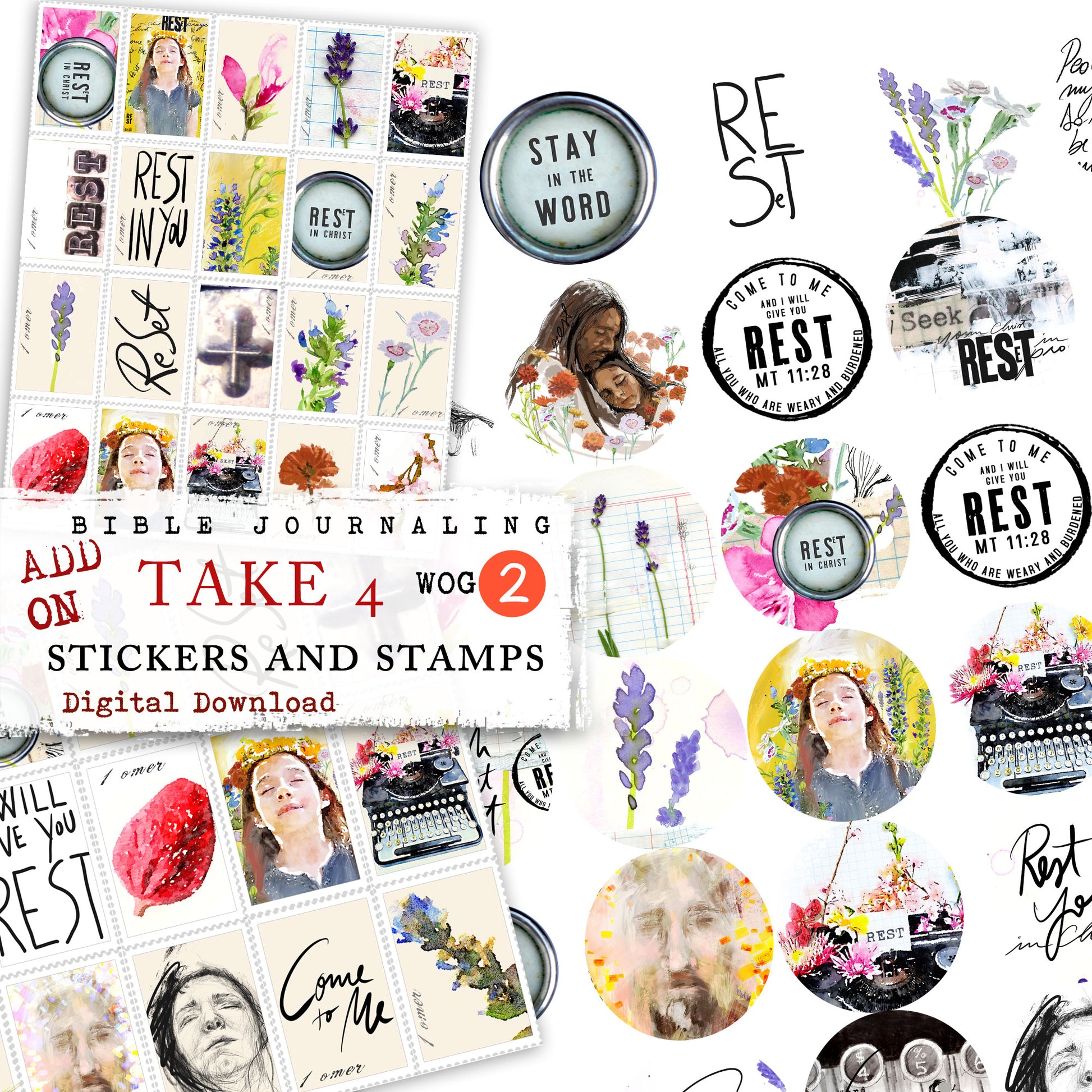 The same lovely "stickers" although in a digital format, coordinating with the Rest - Word of God kit series. Print as many as you need on your choice of sticker paper, labels or card stock.