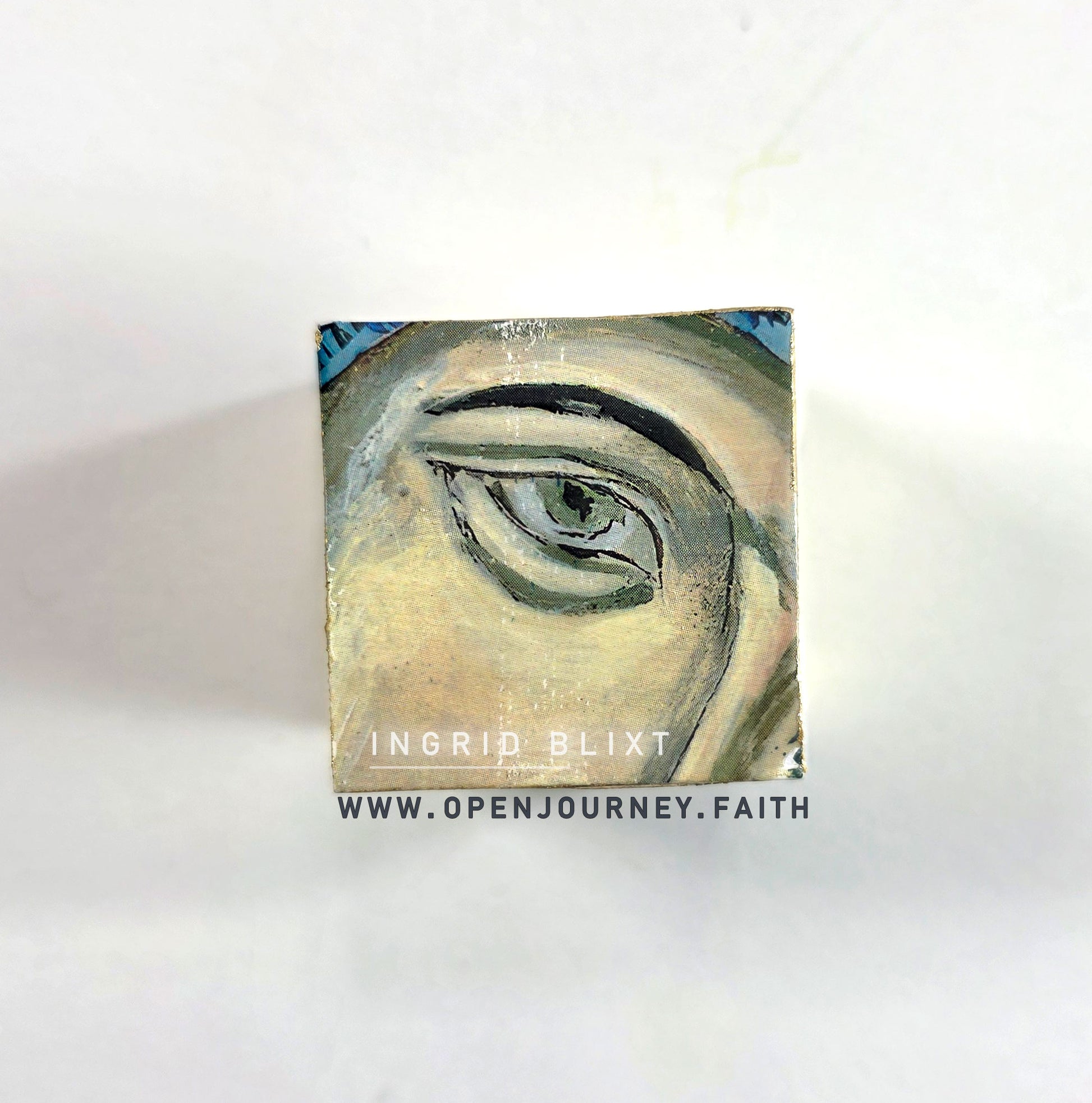 This tiny treasure is a mix media artwork, depicting the Face of Mary.