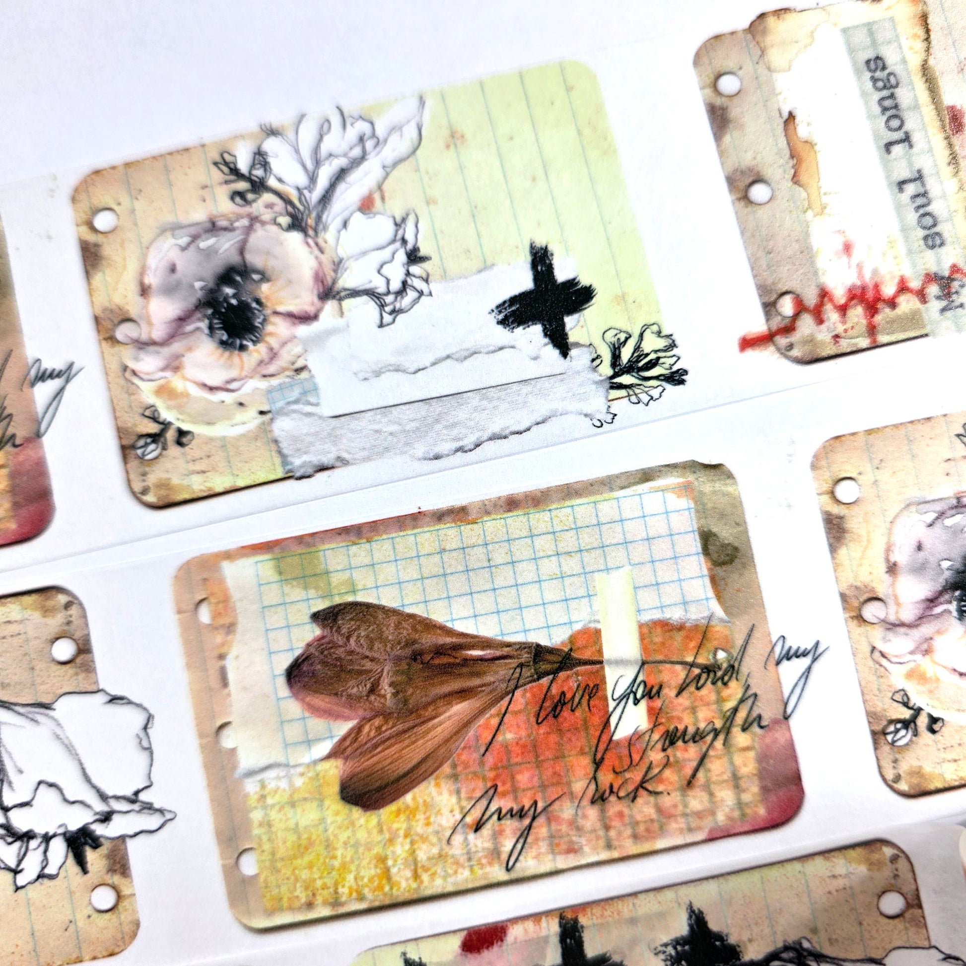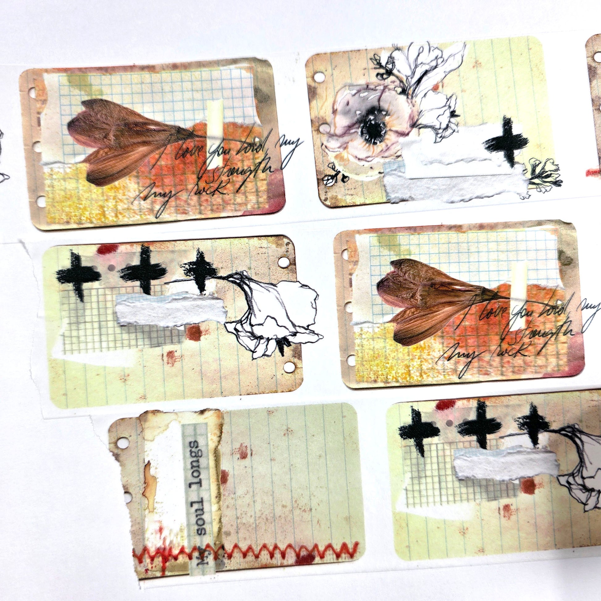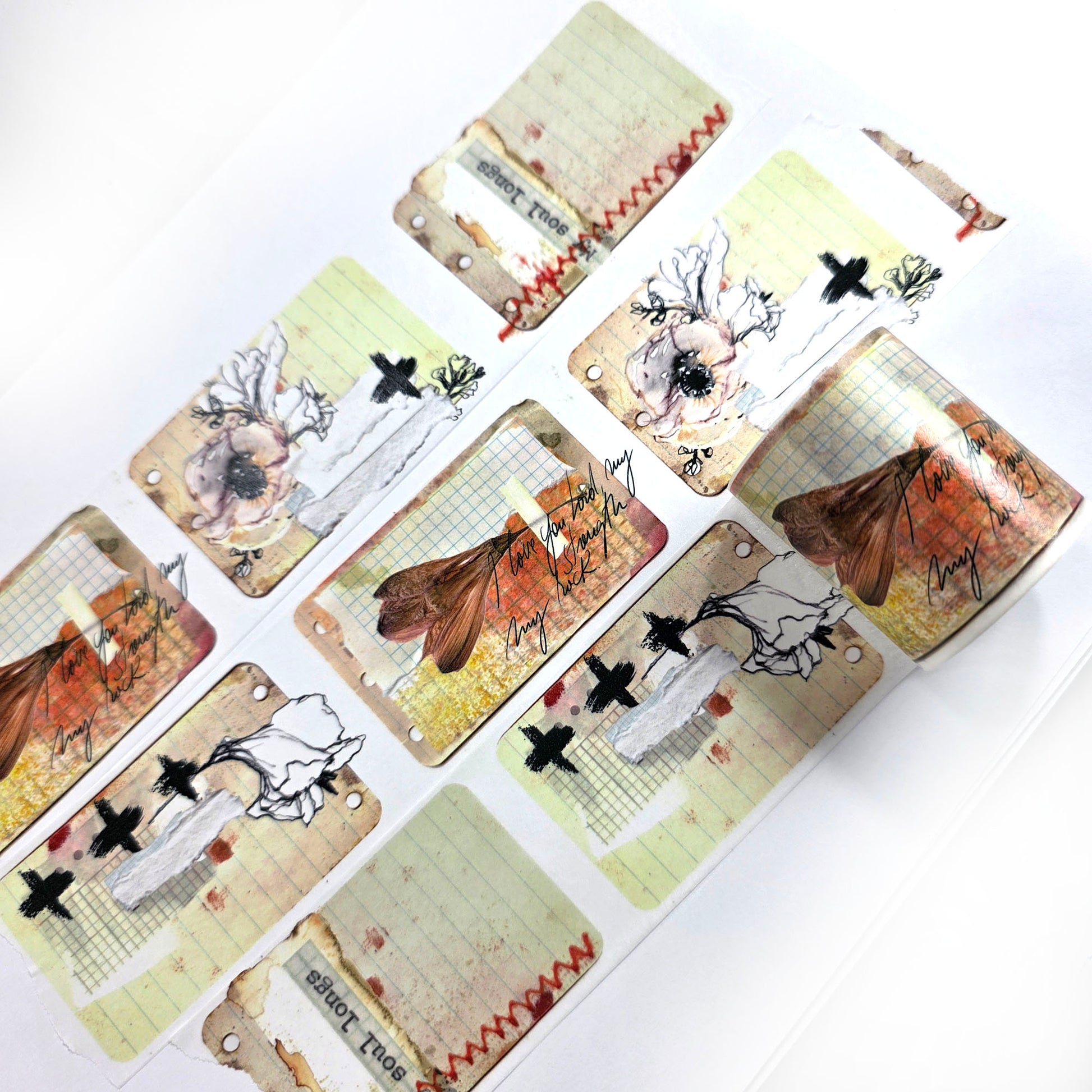 The mix media clusters make great layered journaling elements. The washi tape measures 1.6" wide and 196" long (4cm x 5m).