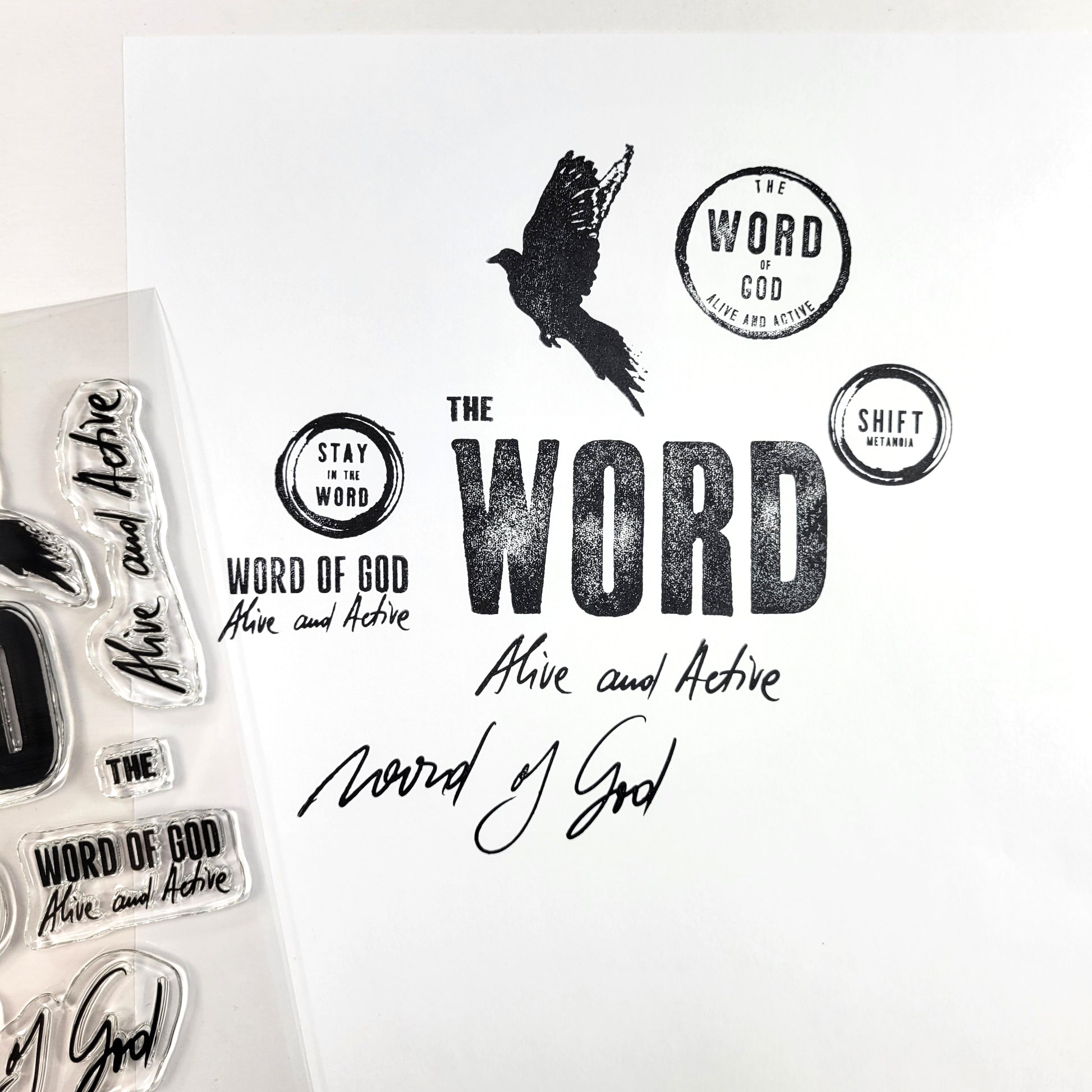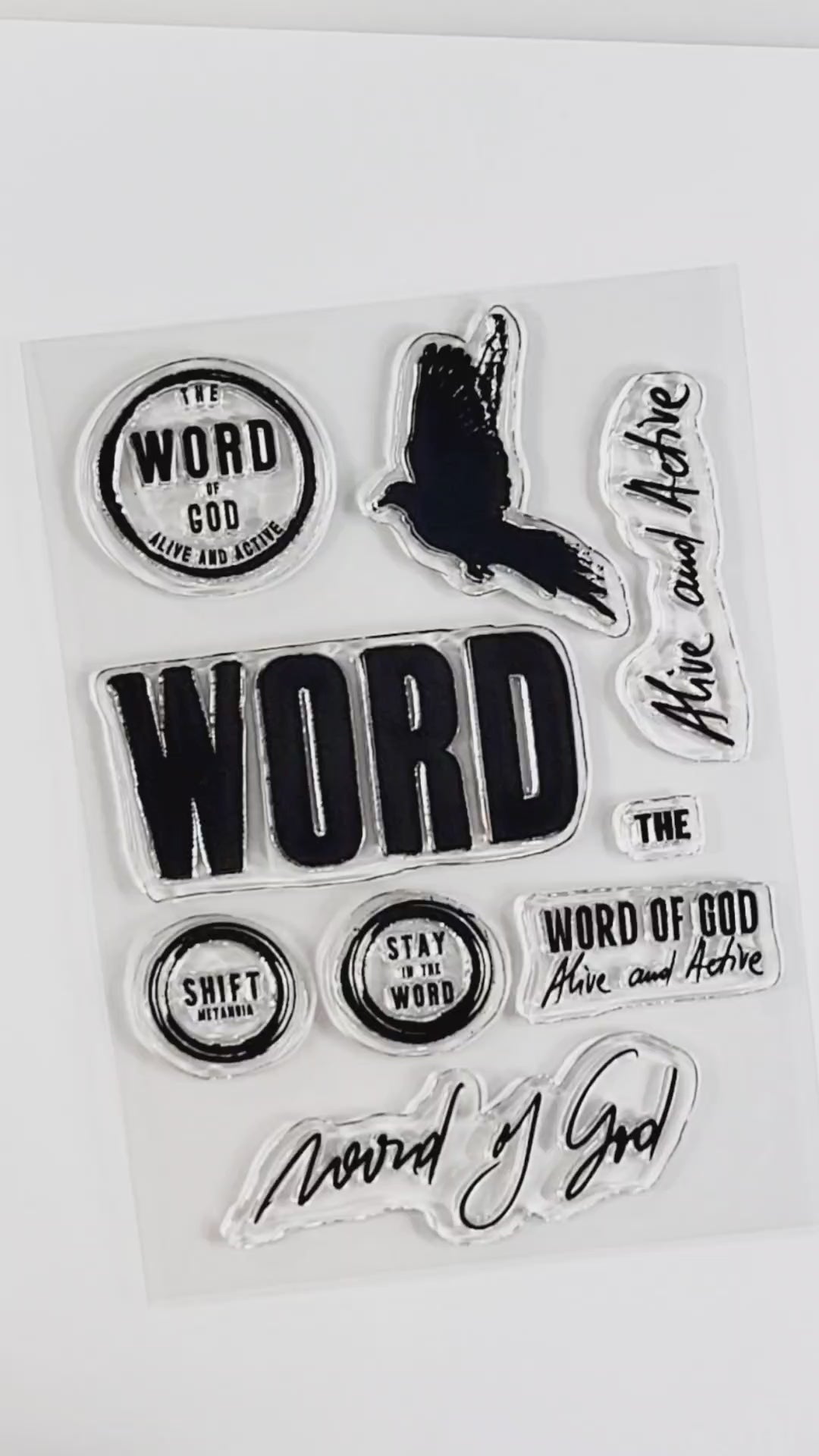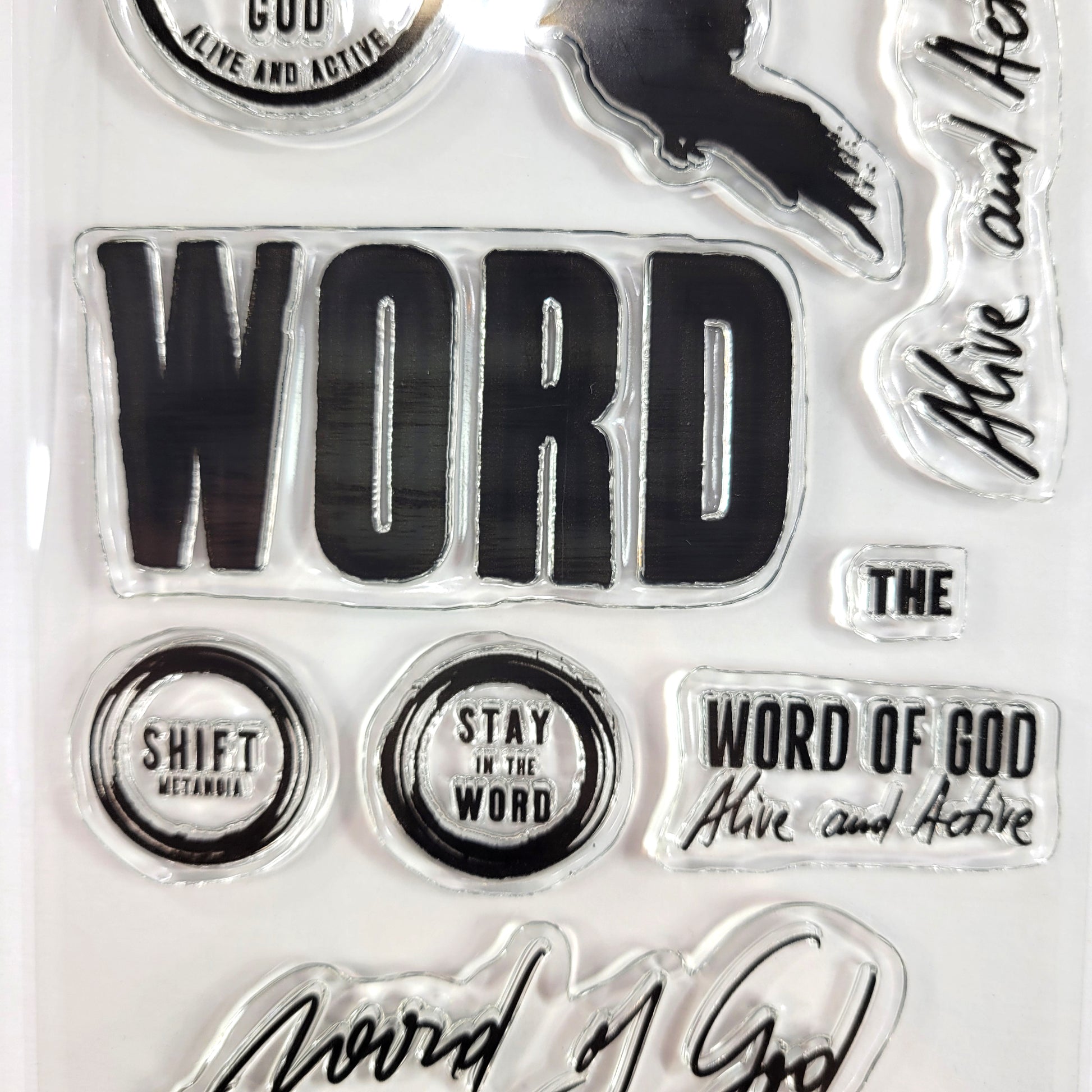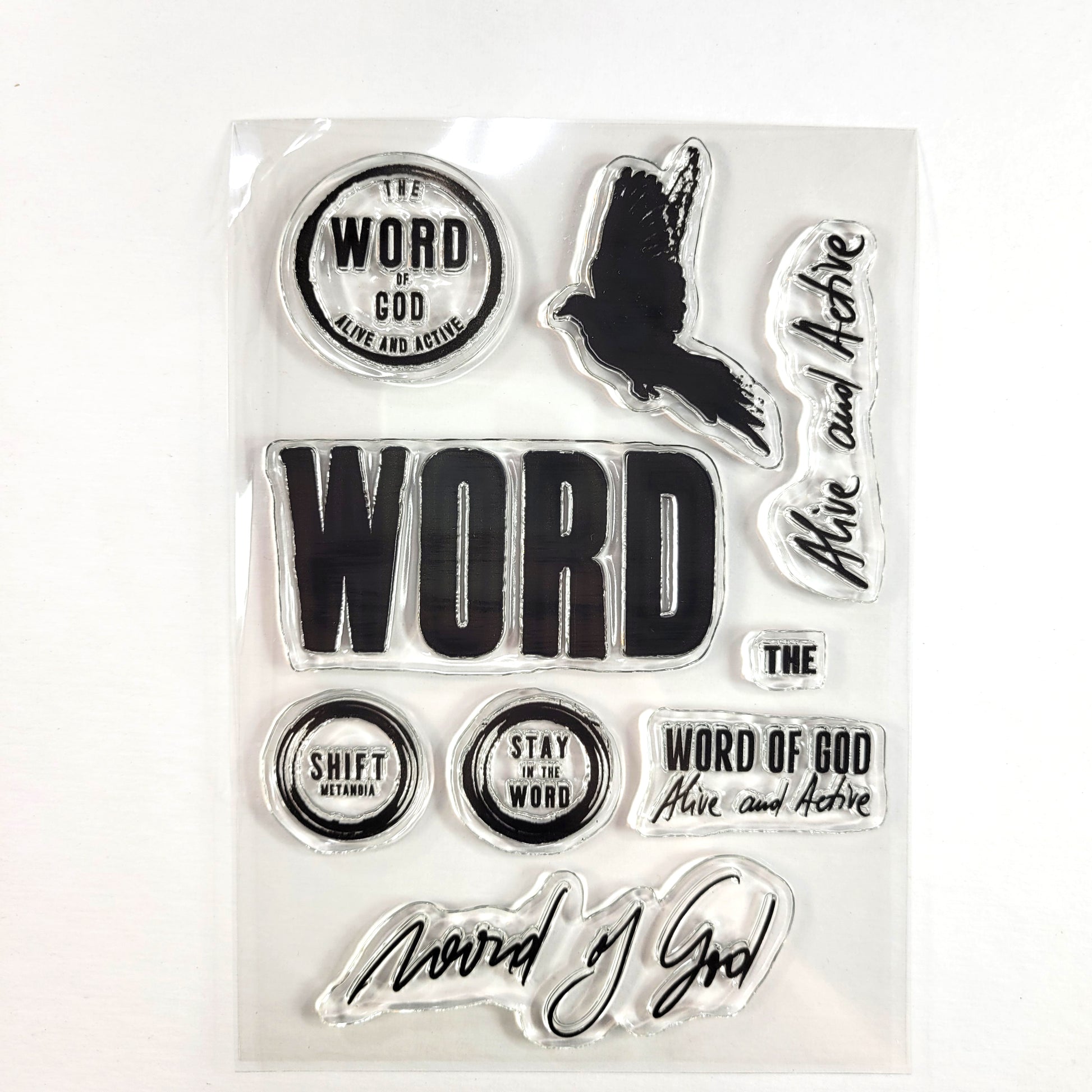 A Large Stamp set for the "Take 4" series kit for Bible journaling, measures 5x7 inches and contains 9 stamps.