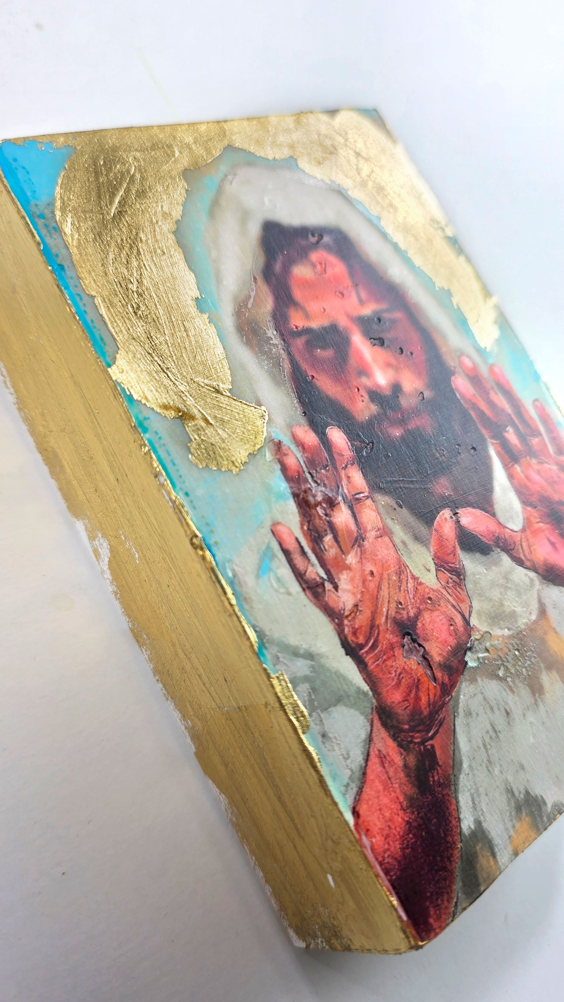 A mix media artwork, depicting a Jesus Blessing.