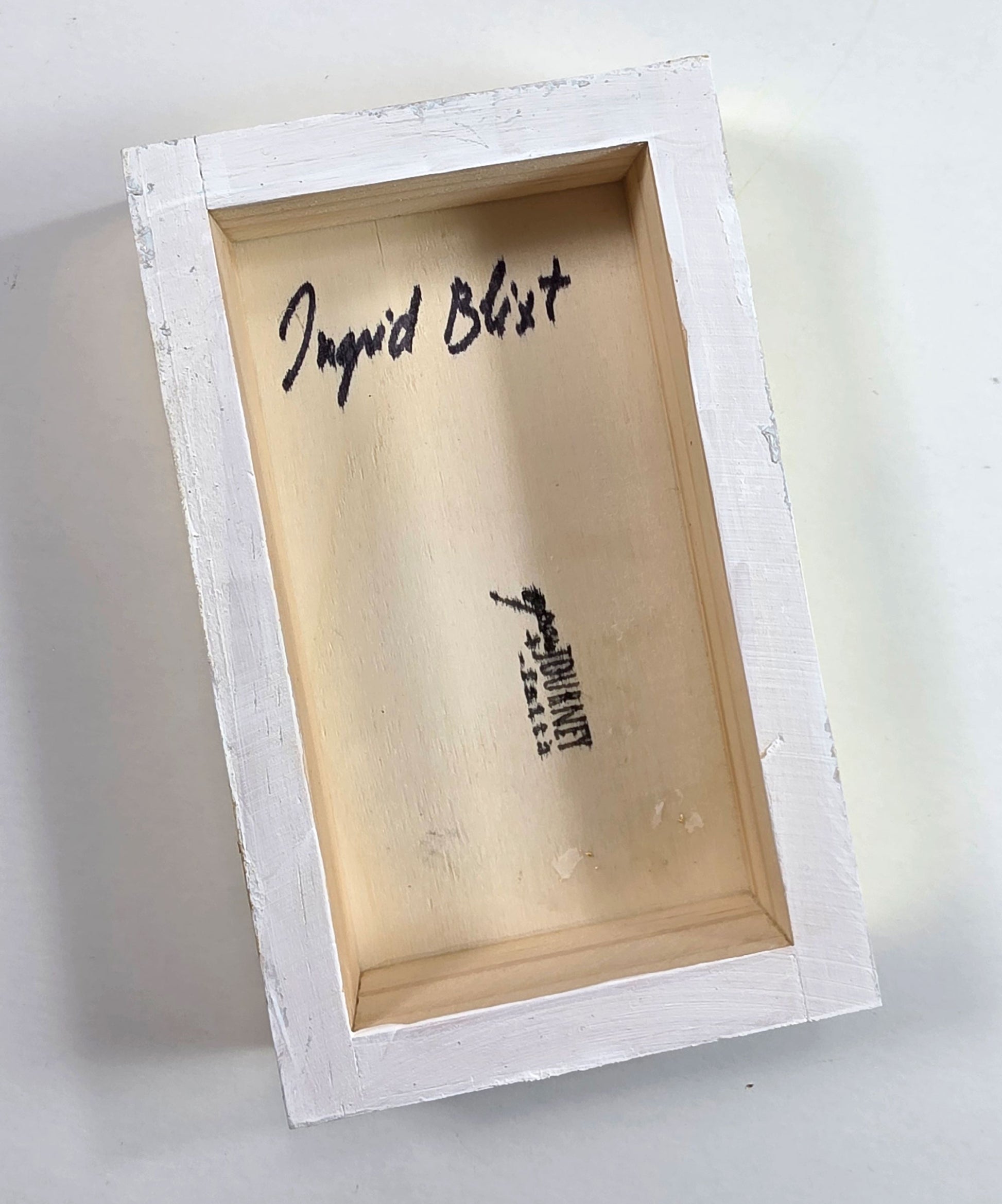 The artwork is done on a wooden surface, measuring 3x5" and .5" deep. The sides are finished with gold leaf. The artwork can sit on a shelf or can hang on the wall. Beautiful from all angles!
