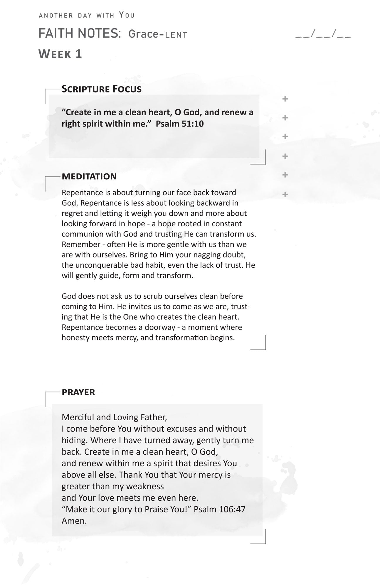 The devotional in these journaling pages is not contained in the main GRACE-LENT devotional kit, therefore this makes a great addition to your study. The pages are designed to fit in the Prayer Journal (or they will fit in a 6 hole A5 size binder).