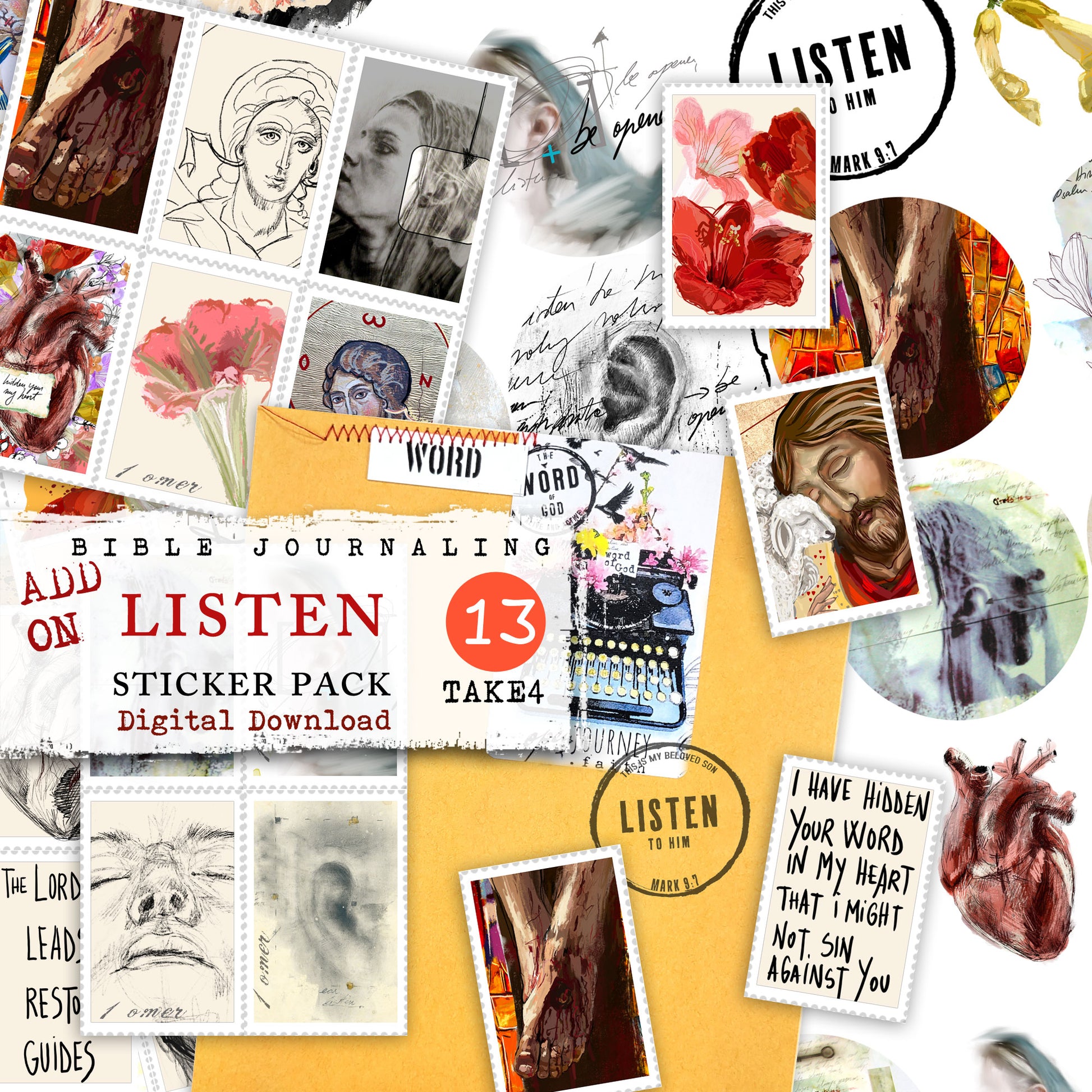 LISTEN kit ADD ON - Journaling Stickers and cards- digital download