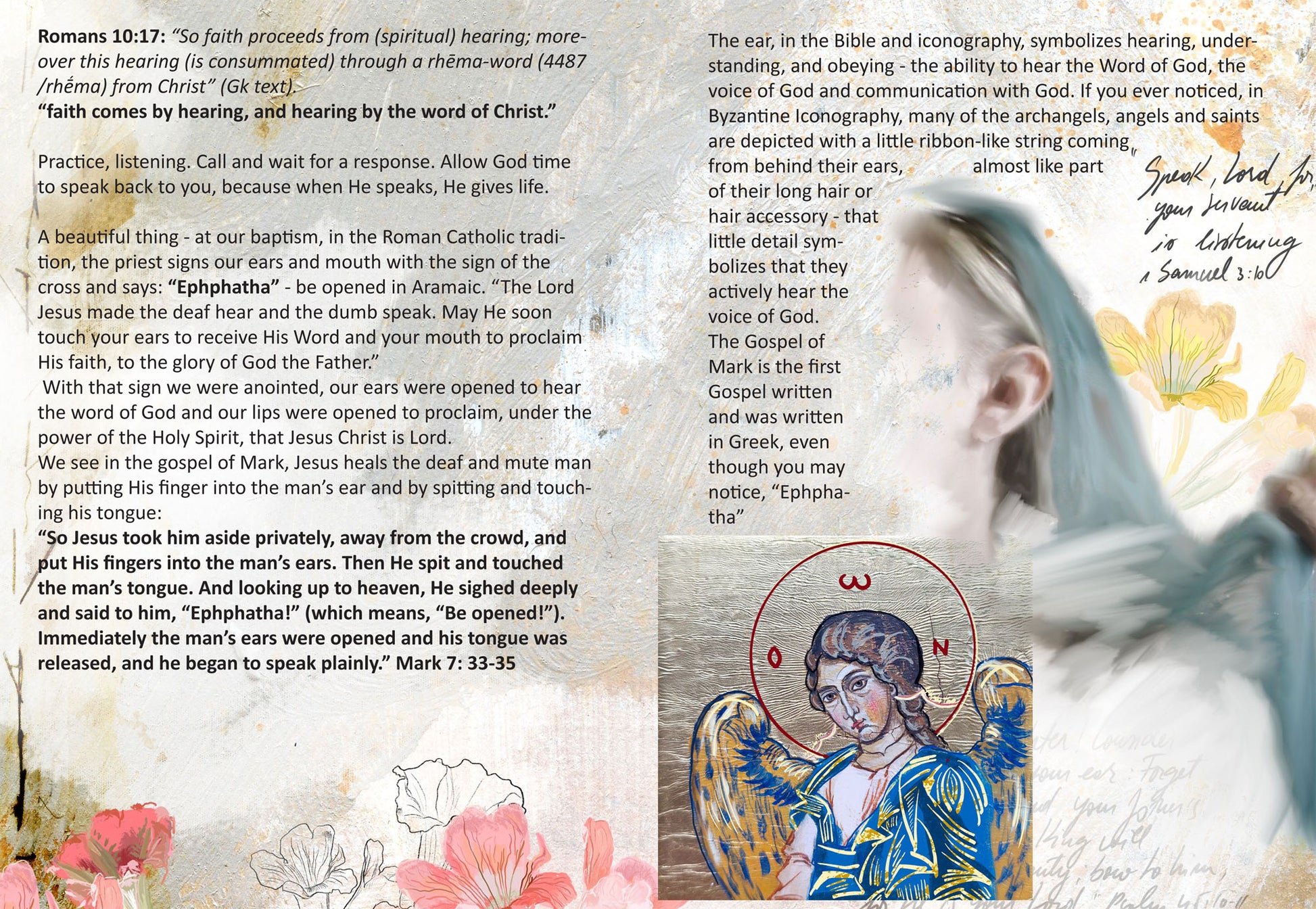 "Listen" Kit is a 4-week Bible study experience designed for growing stronger in the practice of listening to the voice of God and understanding why we should strive to do so. Through select word studies both Greek and Latin, and specific Bible passages we will deepen our relationship and dialog with God. This kit offers a quiet invitation to slow down and learn the sacred rhythm of listening.
