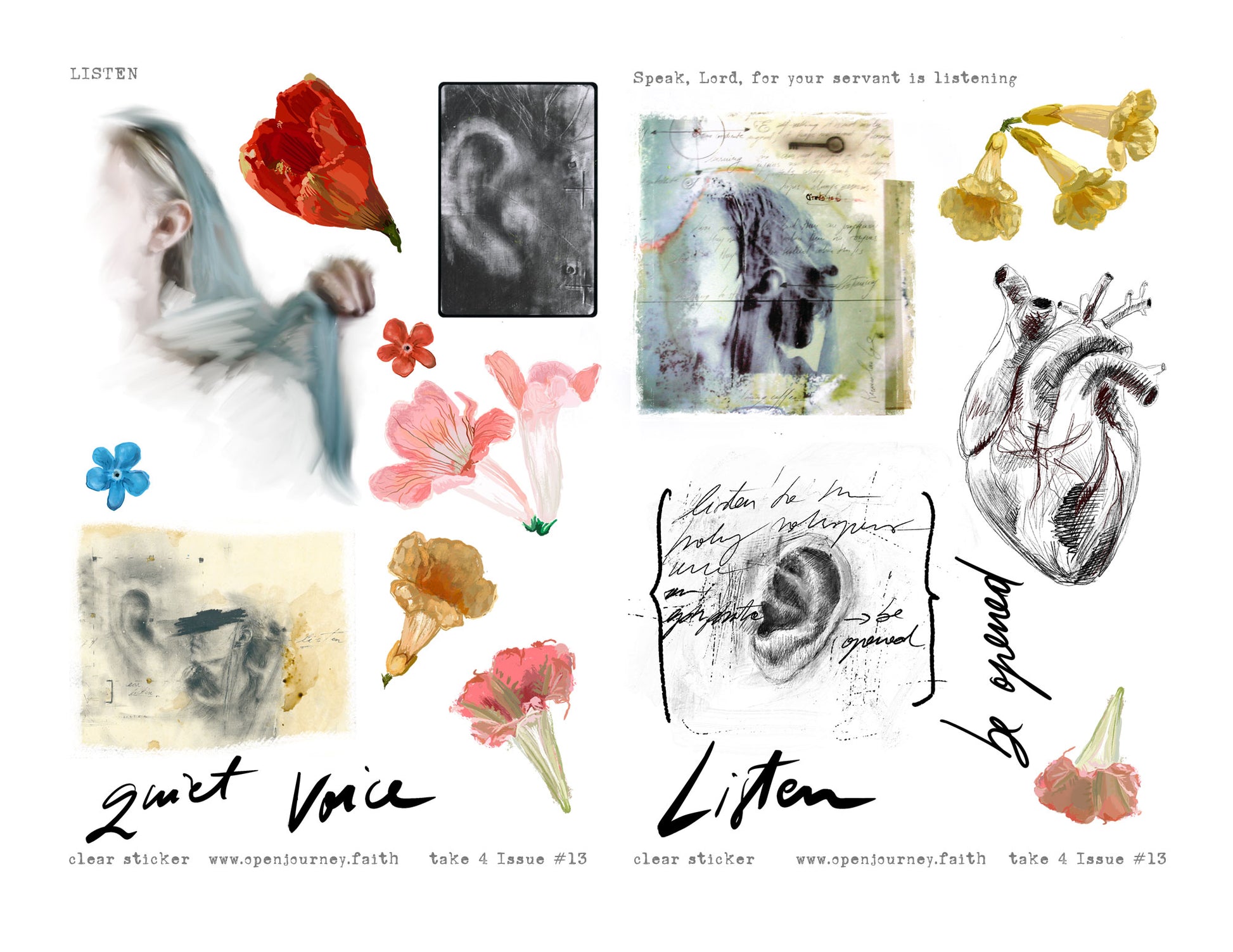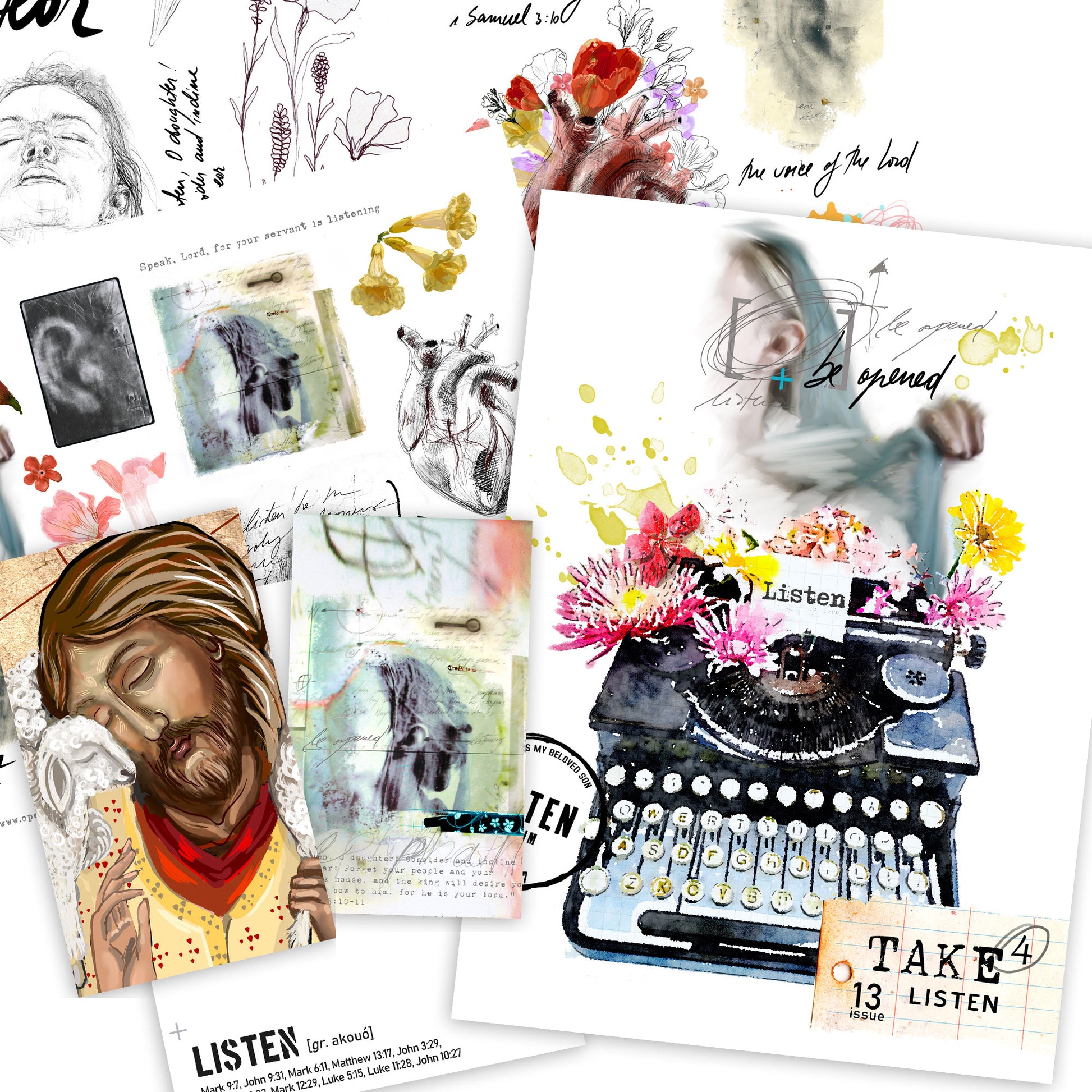 "Listen" Kit is a 4-week Bible study experience designed for growing stronger in the practice of listening to the voice of God and understanding why we should strive to do so. Through select word studies both Greek and Latin, and specific Bible passages we will deepen our relationship and dialog with God. This kit offers a quiet invitation to slow down and learn the sacred rhythm of listening.