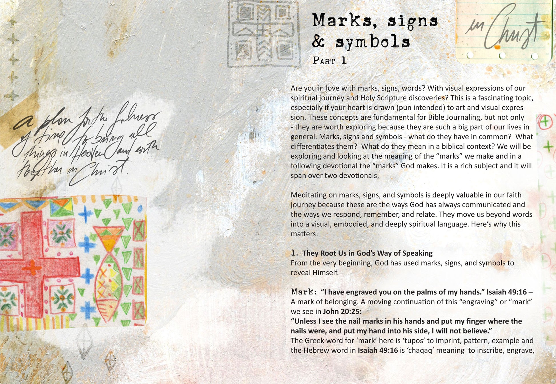 "Marks" Kit is a 4-week Bible study experience designed for going deeper into the meaning of marks, signs and symbols, understanding their purpose for both expression and communication . Through select word studies both Greek and Hebrew, and specific Bible passages we will deepen our relationship and dialog with God. This study highlights the beauty and significance of the marks we make, and the sacred signs God places in our lives, each one a reminder, a witness, and a point of connection.