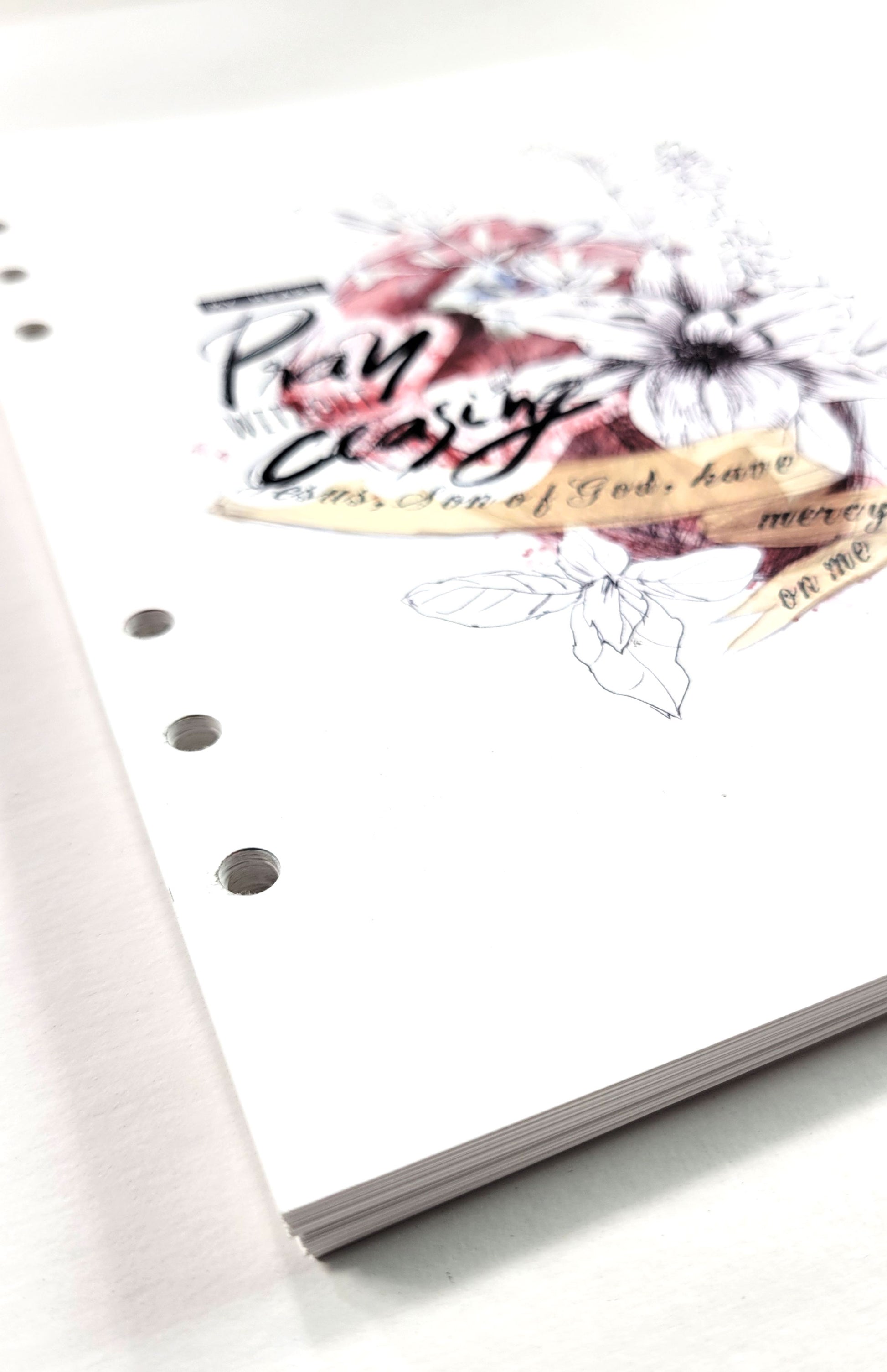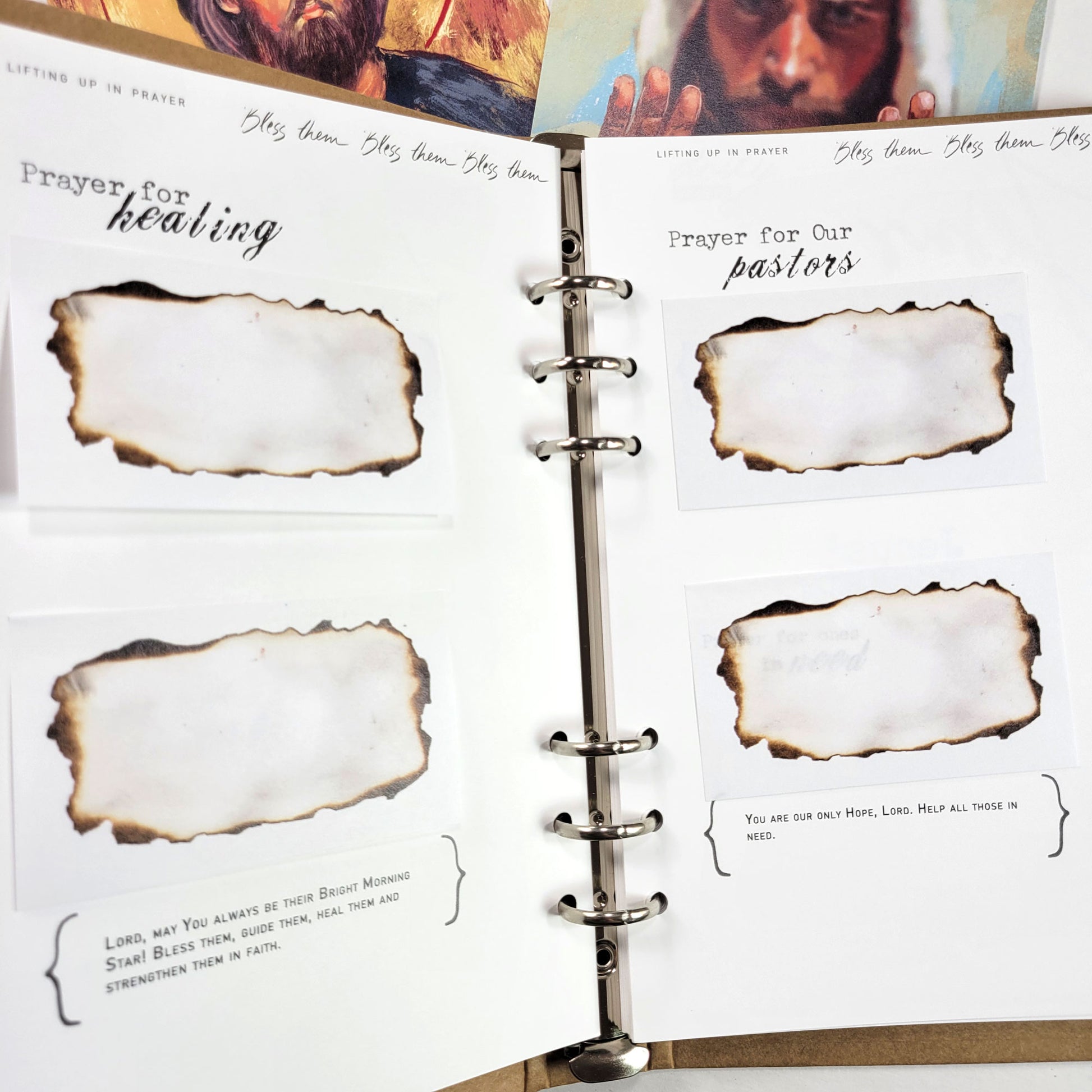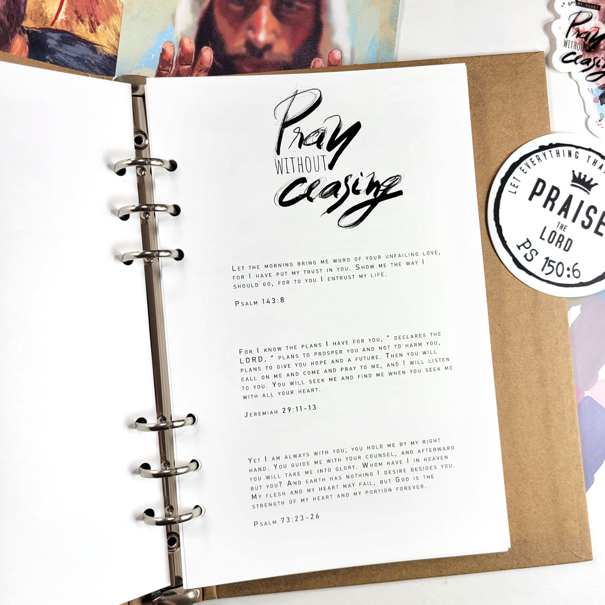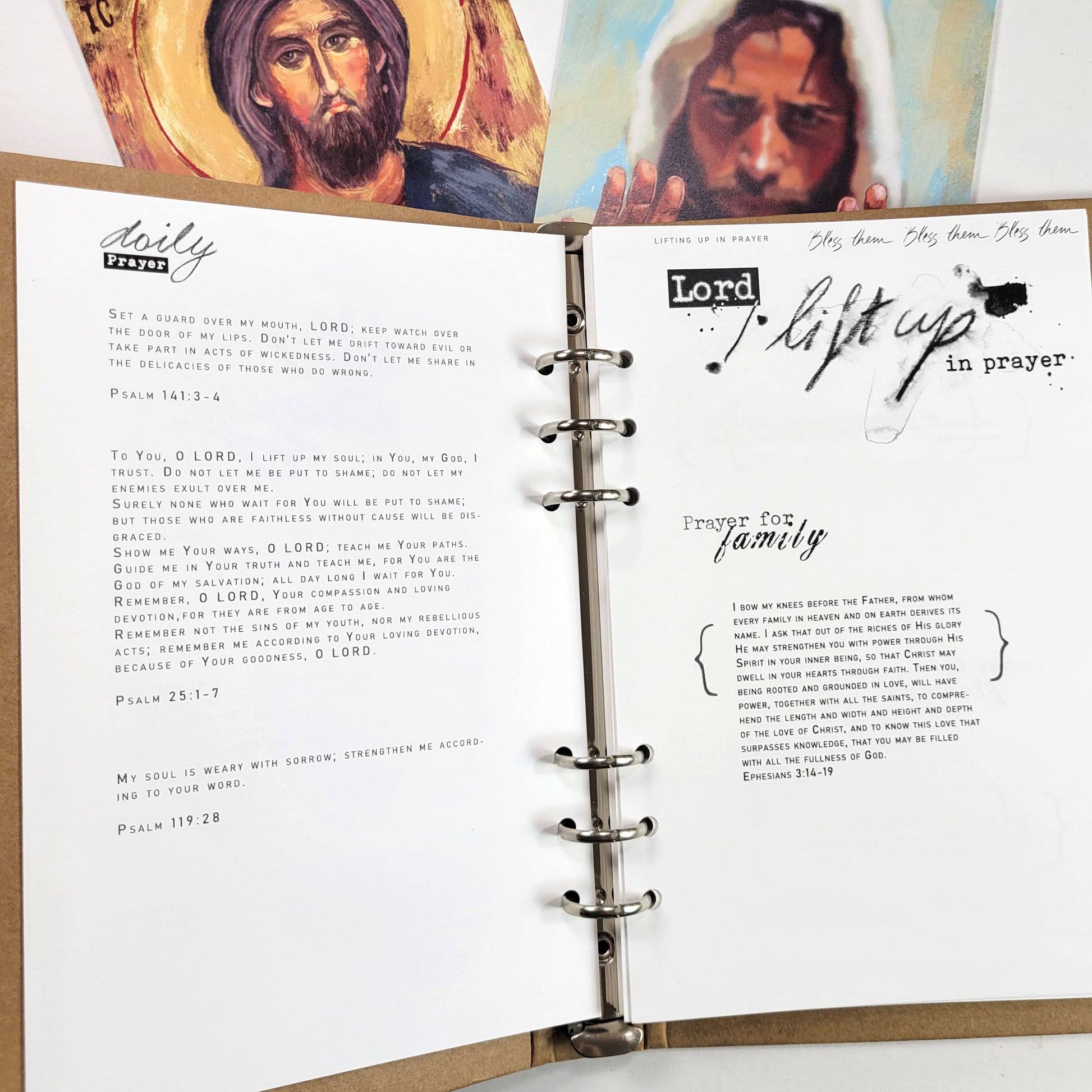 The prayer journal is available as a kit or you can purchase individual elements like a refill pack or binder only.