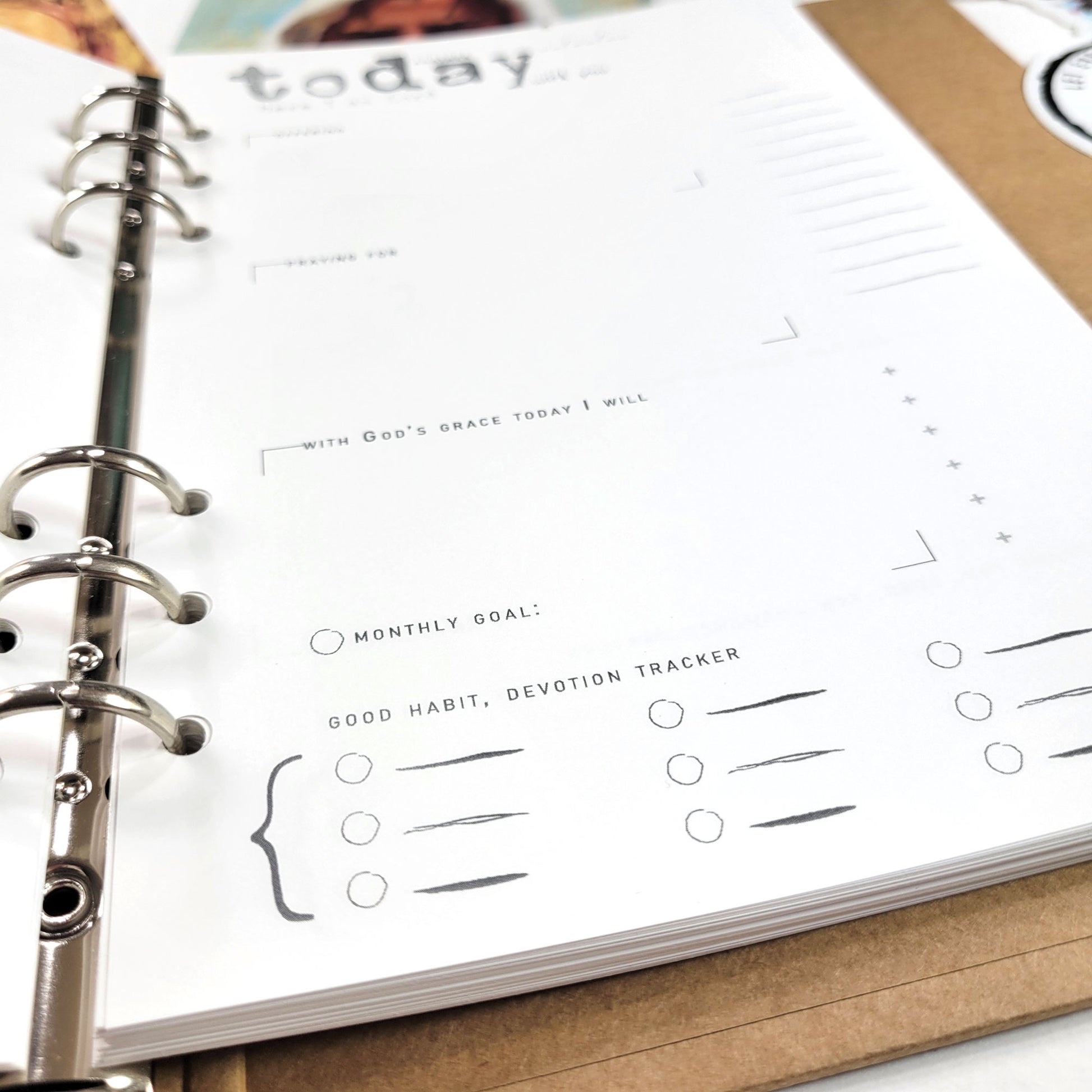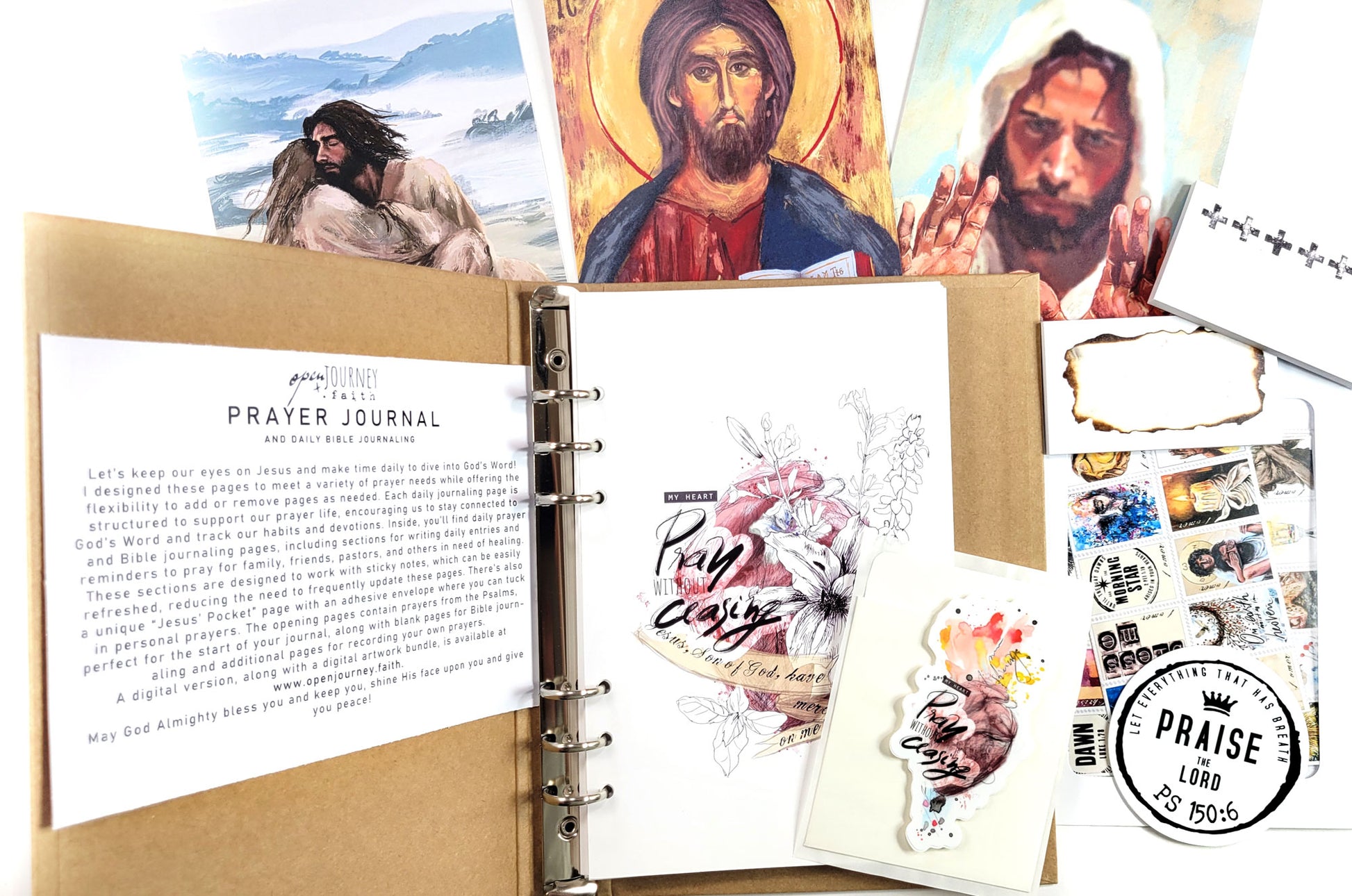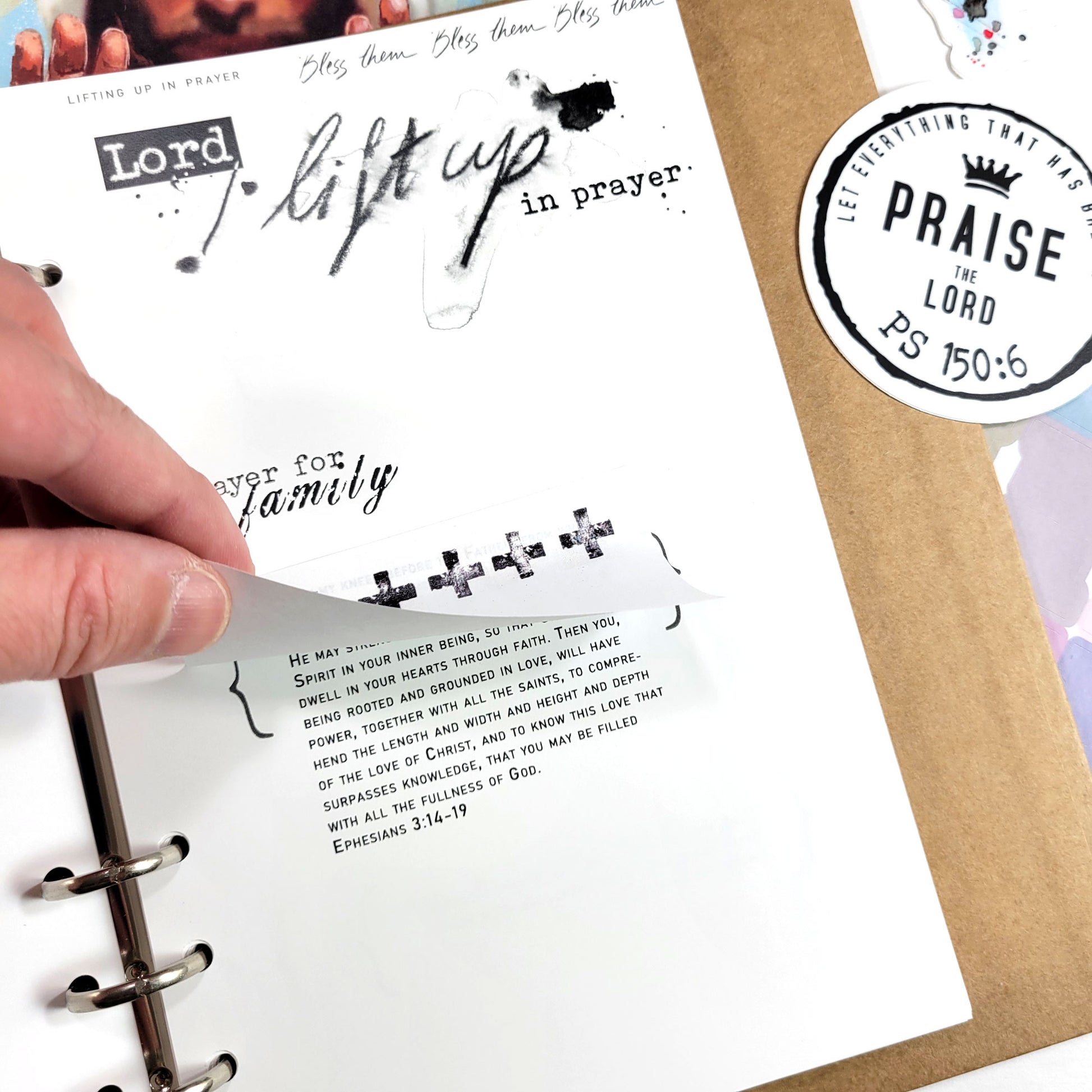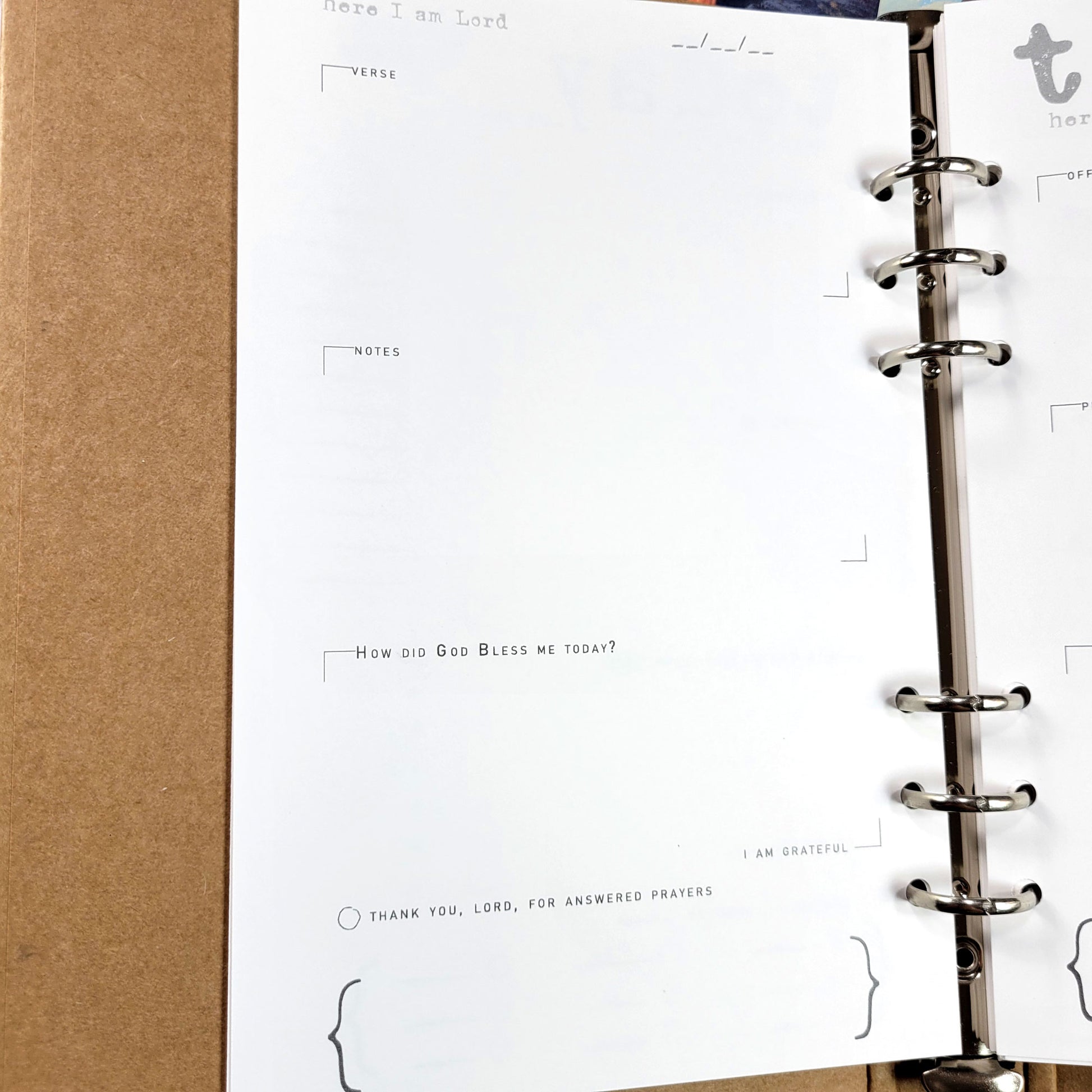 The prayer journal is available as a kit or you can purchase individual elements like a refill pack or binder only.