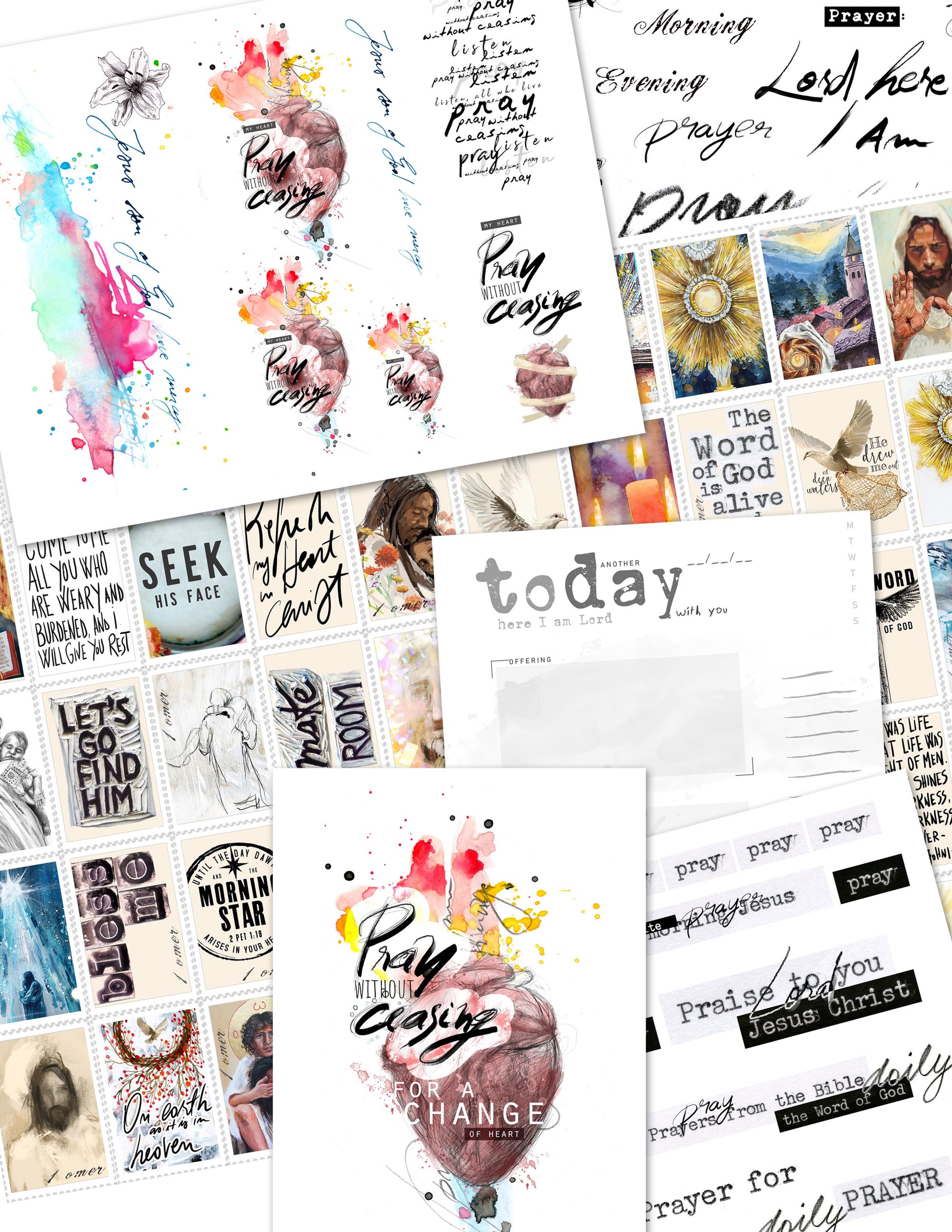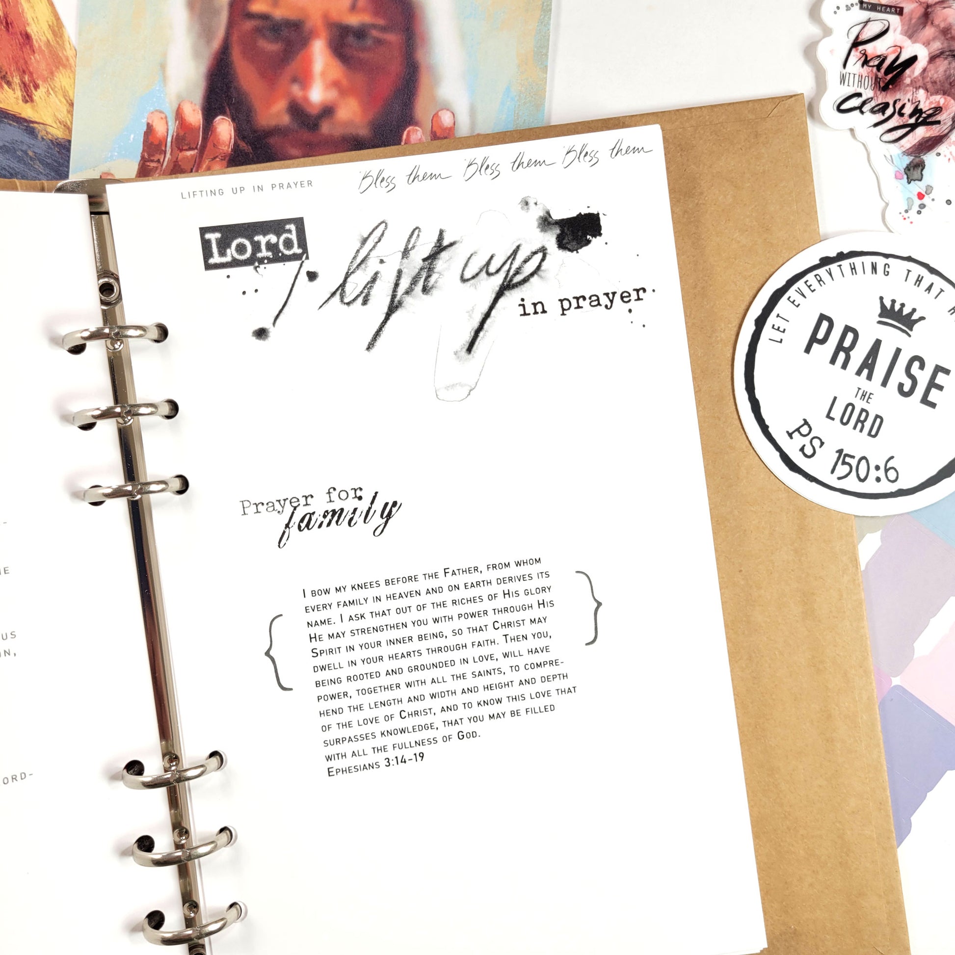 + journaling pages: prayers from the Psalms, blank daily prayer pages to add your own prayers, prompted prayer pages, daily journaling pages with prompts and blank Bible journaling pages perfect for mix media