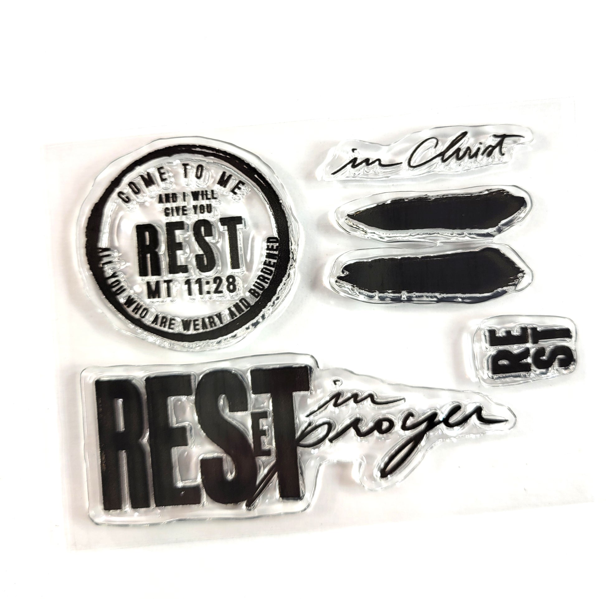 A 3x4 Stamp set for the "Rest - Take 4" kit for Bible journaling, contains 5 stamps.