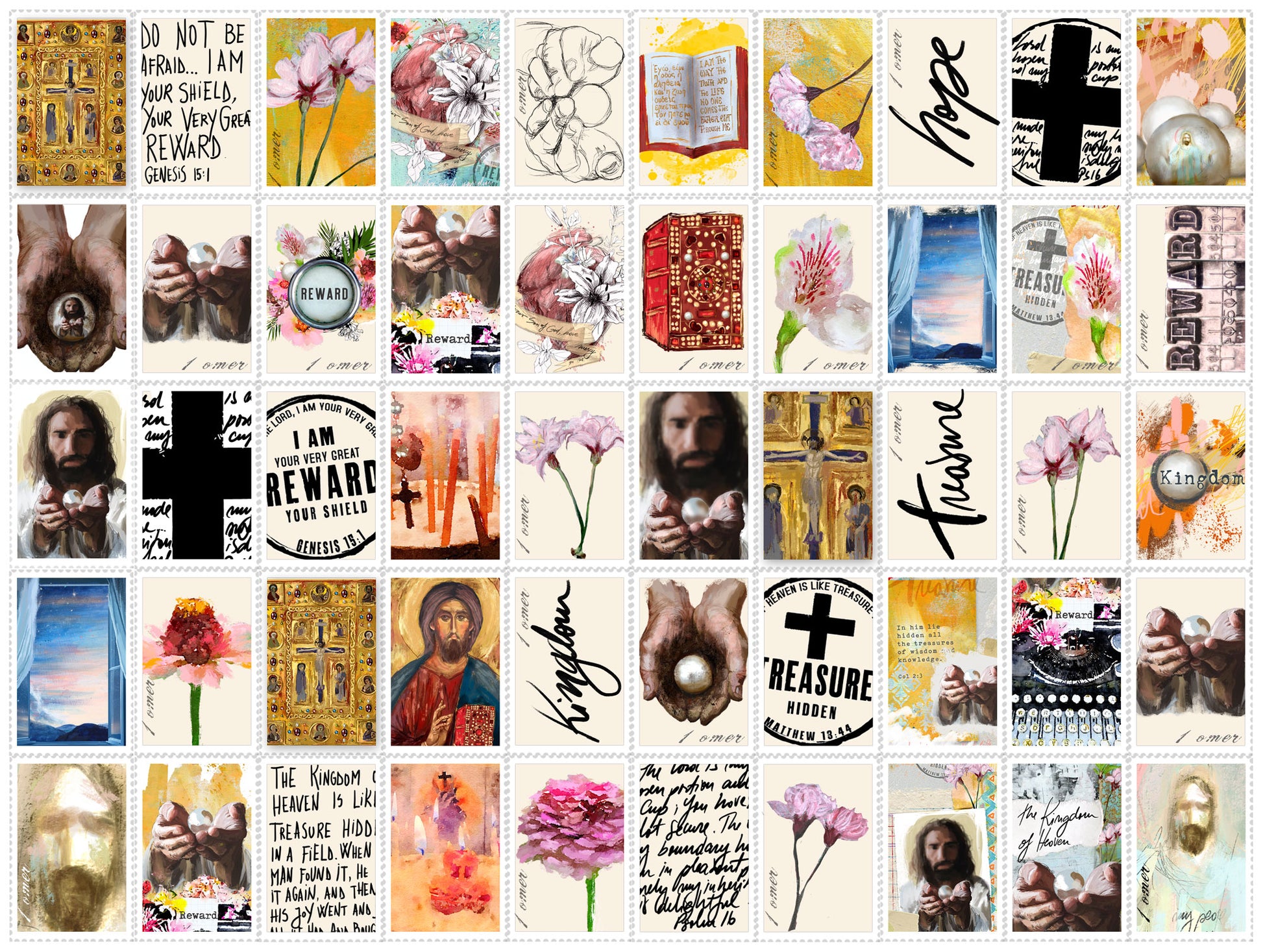 This great sticker collection makes journaling so easy! A great ADD ON for the Take 4 - REWARD kit: A set of 30 1.5" circular stickers and a set of 50 Post stamp stickers, 1x1.5". A total of 80 stickers!